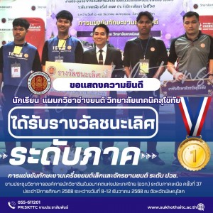ในการแข่งขันทักษะวิชาชีพ ทักษะพื้นฐาน และหลักสูตรวิชาชีพระยะสั้น ระดับอาชีวศึกษาจังหวัดสุโขทัย ครั้งที่ 37 ณ วิทยาลัยสารพัดช่างสุโขทัย