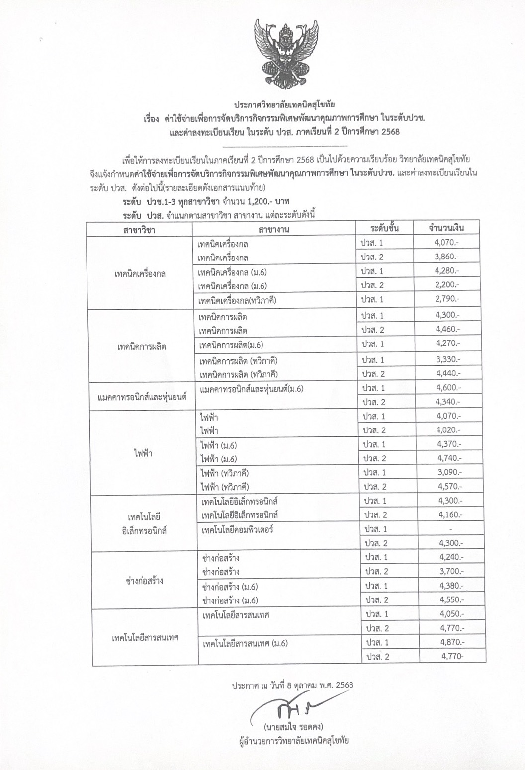 ค่าใช้จ่ายเพื่อการจัดบริการกิจกรรมพิเศษพัฒนาคุณภาพการศึกษา ในระดับปวช. และค่าลงทะเบียนเรียน ในระดับ ปวส. |