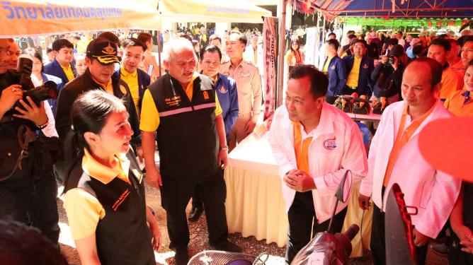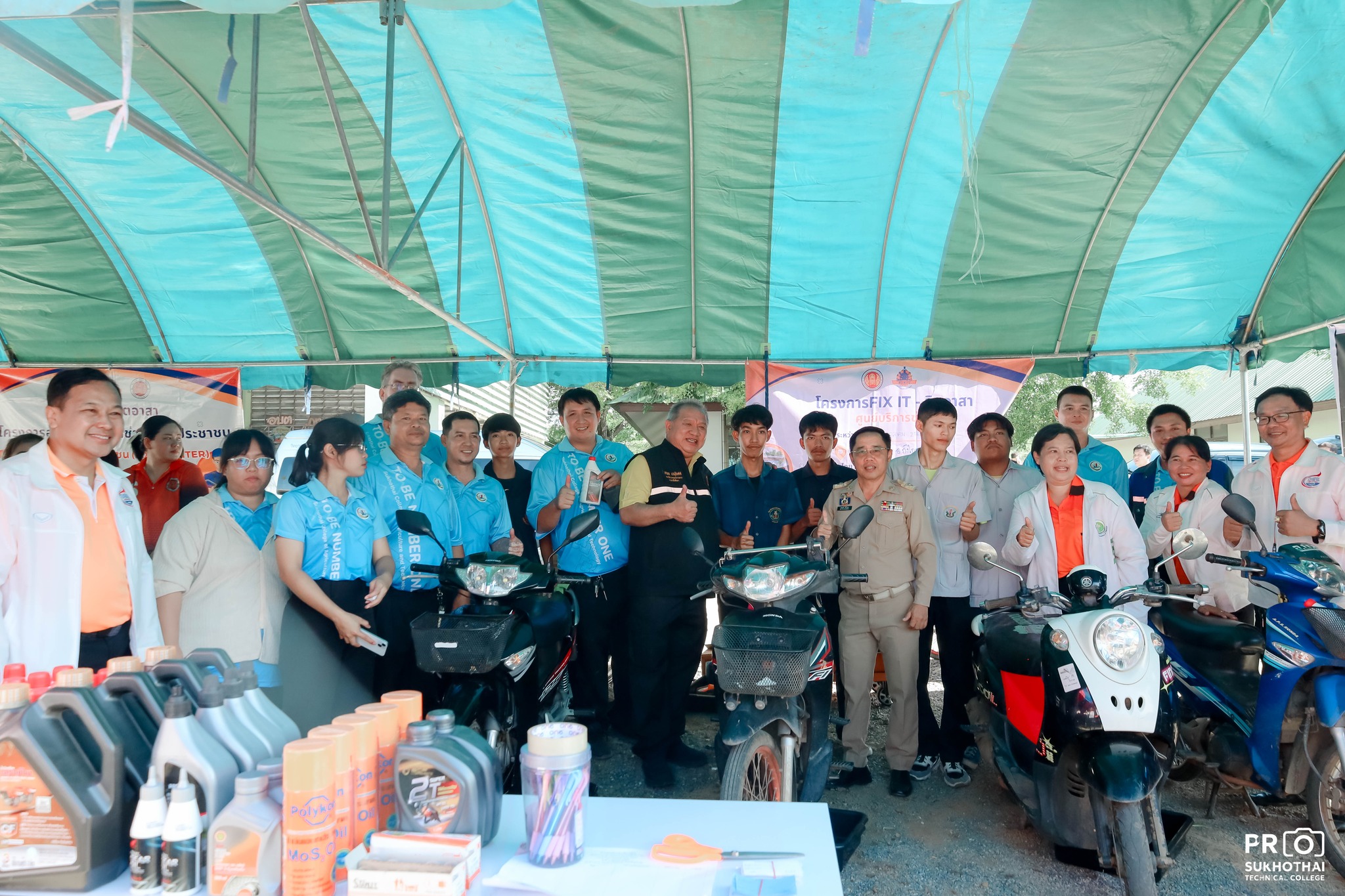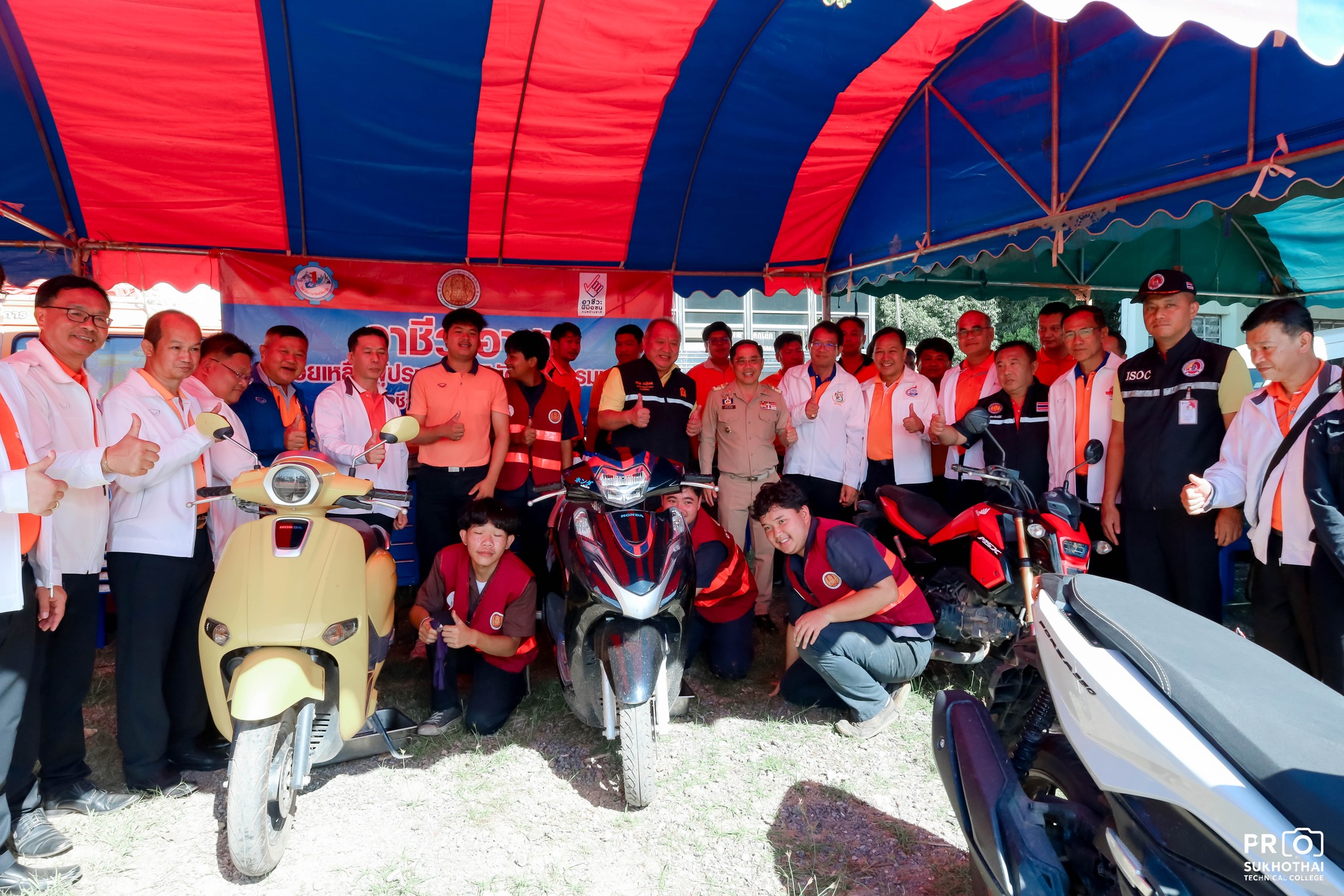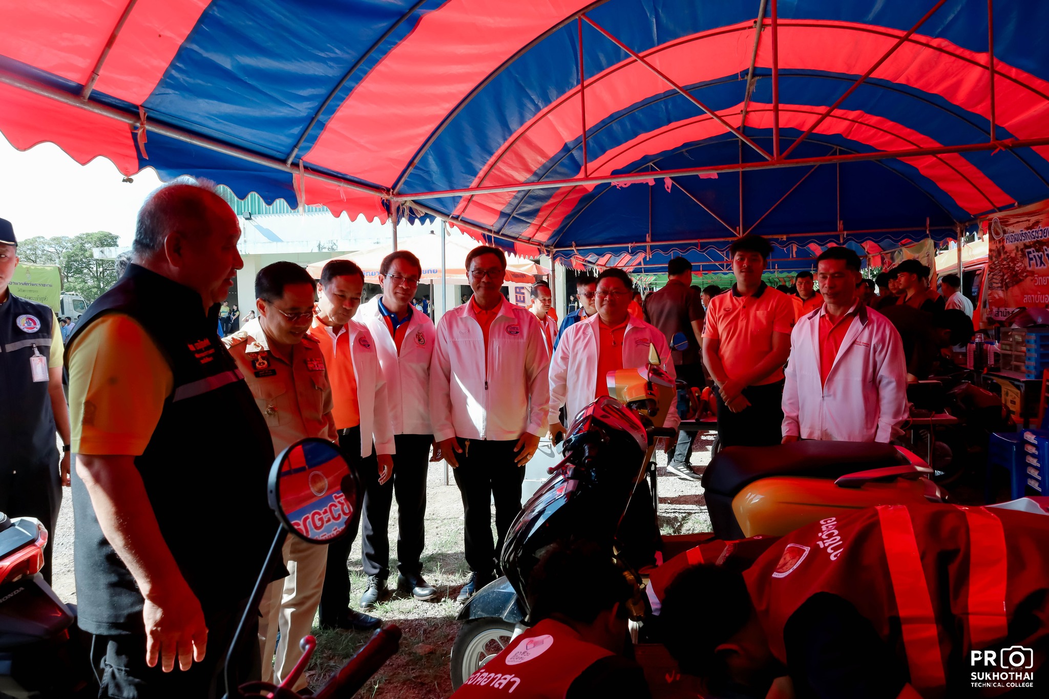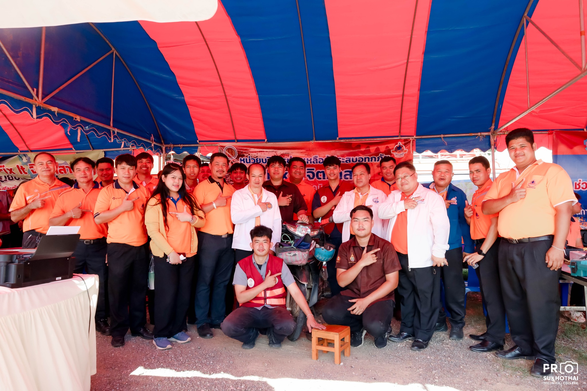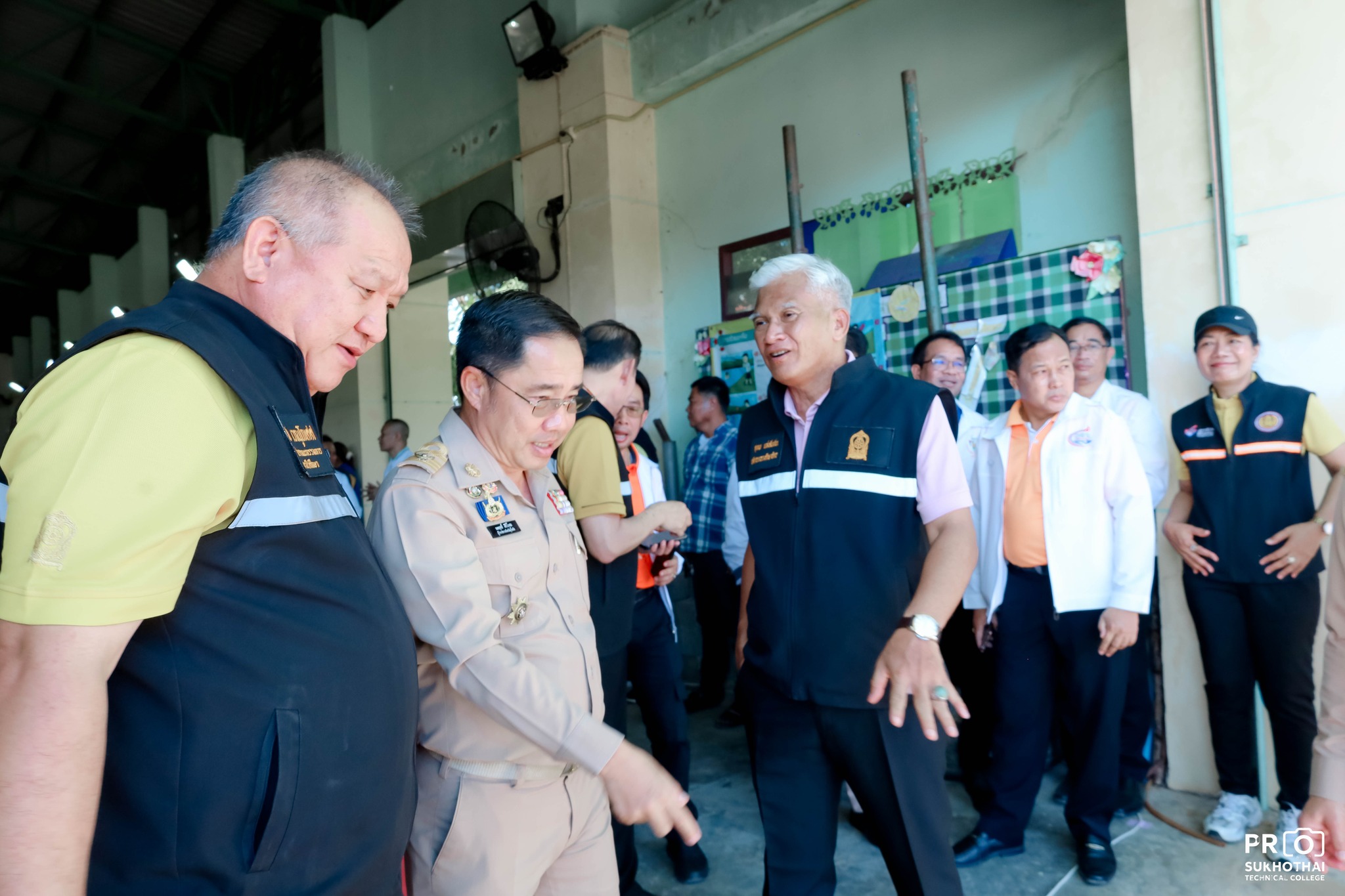 สอจ.สุโขทัย ร่วมต้อนรับ รองนายกฯ พร้อมคณะติดตาม พร้อมทั้งออกหน่วย "ศูนย์ซ่อมสร้างเพื่อชุมชน" (Fix it Center) ช่วยเหลือน้ำท่วม วันที่ 6 ตุลาคม 2568 นายสมใจ รอดคง ผู้อำนวยการวิทยาลัยเทคนิคสุโขทัย ปฏิบัติหน้าที่ผู้อำนวยการสำนักงานอาชีวศึกษาจังหวัดสุโขทัย พร้อมด้วยผู้บริหาร ครู นักเรียน นักศึกษาในสังกัด ร่วมต้อนรับนายยศพล เวณุโกเศศ เลขาธิการคณะกรรมการการอาชีวศึกษา ในการร่วมติดตาม ร.อ.ธรรมนัส พรหมเผ่า รองนายกรัฐมนตรี และรัฐมนตรีว่าการกระทรวงเกษตรและสหกรณ์ พร้อมด้วย ศ.ดร.นฤมล ภิญโญสินวัฒน์ รัฐมนตรีว่าการกระทรวงศึกษาธิการ พร้อมคณะ ลงพื้นที่สำรวจสถานการณ์น้ำในแม่น้ำยม อบต.กงไกรลาศ อำเภอกงไกรลาศ จังหวัดสุโขทัย เพื่อติดตามสถานการณ์อุทกภัยและแนวทางบริหารจัดการน้ำในพื้นที่ พร้อมมอบถุงยังชีพจำนวน 840 ชุด จากมูลนิธิธรรมนัส พรหมเผ่า เพื่อการกุศล และสุขาลอยน้ำจากสำนักงานคณะกรรมการการอาชีวศึกษา ซึ่งสร้างโดยวิทยาลัยเทคนิคพระนครศรีอยุธยา ให้แก่พี่น้องชาวสุโขทัยที่ได้รับผลกระทบจากน้ำท่วม