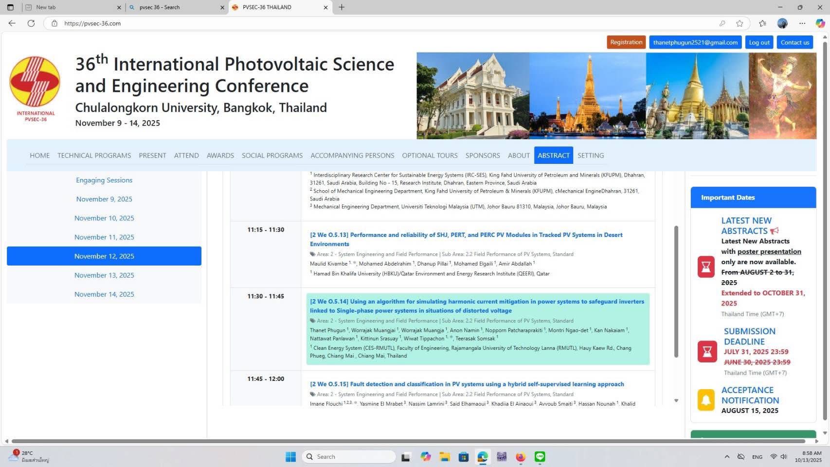 ???? Inter Conference International Photovoltaic Science and Engineering Conference Chulalongkorn University, Bangkok, Thailand November 9-14, 2025 (PVSEC 36th). Inter Conference