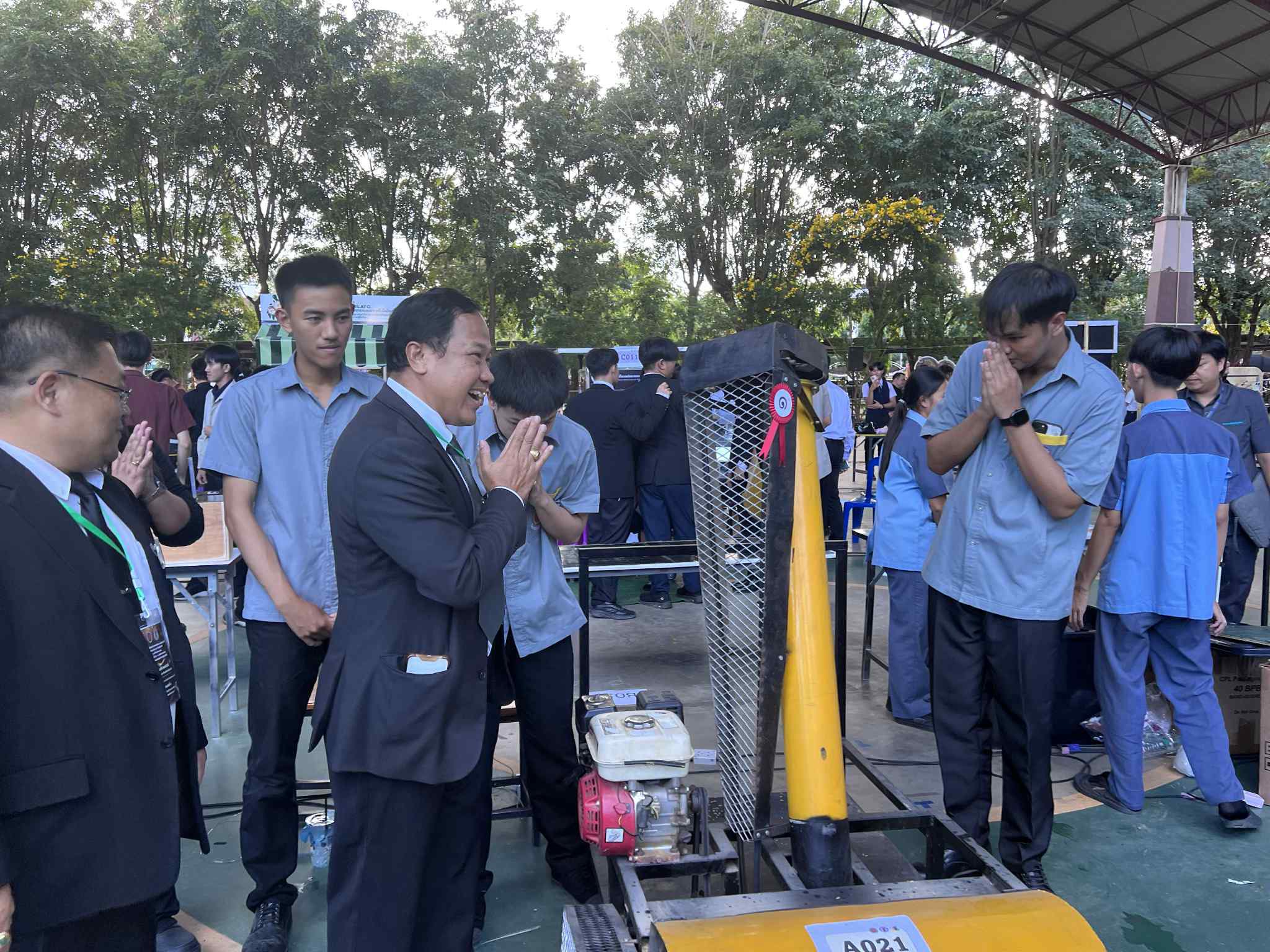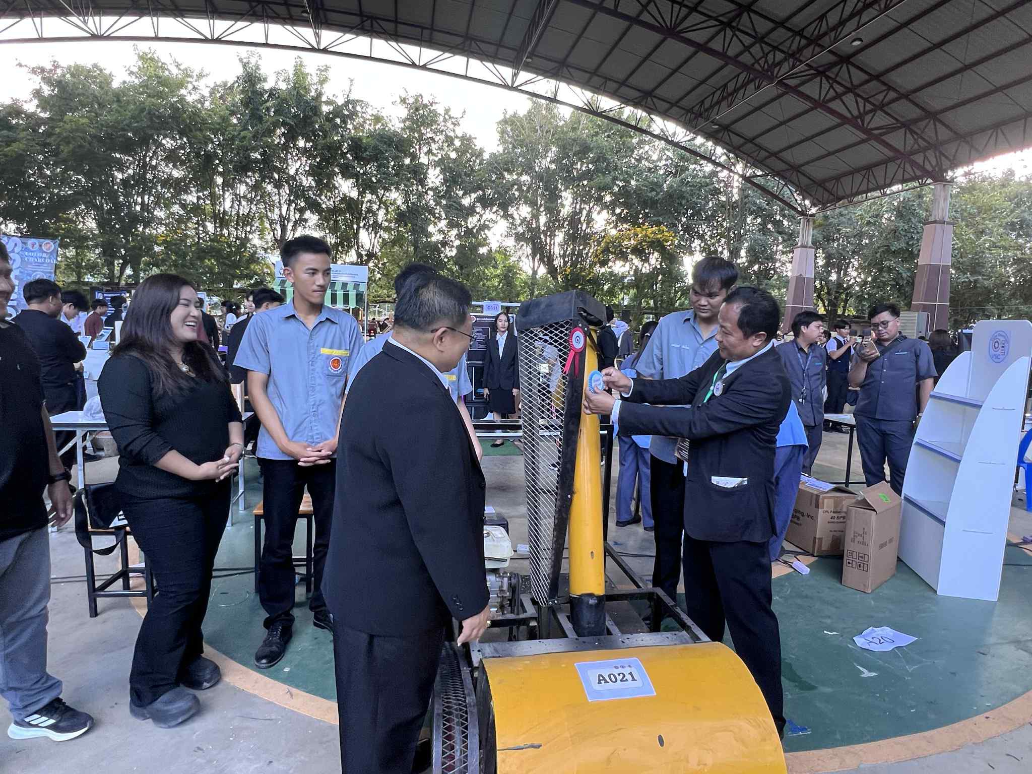 นายสมใจ รอดคง ผู้อำนวยการวิทยาลัยเทคนิคสุโขทัย พร้อมด้วย ดร.ธวัช สอนง่ายดี รองผู้อำนวยการฯ เข้าให้กำลังใจ คณะครู นักเรียน นักศึกษา ที่ร่วมการประกวดสิ่งประดิษฐ์ของคนรุ่นใหม่ ระดับกลุ่มจังหวัด จังหวัดสุโขทัย และ จังหวัดอุตรดิตถ์ ประจำปีการศึกษา 2568 ณ วิทยาลัยเทคนิคอุตรดิตถ์ จ.อุตรดิตถ์ ขอบคุณภาพจากครูสุรศักดิ์ ชัยพรรคพานิช