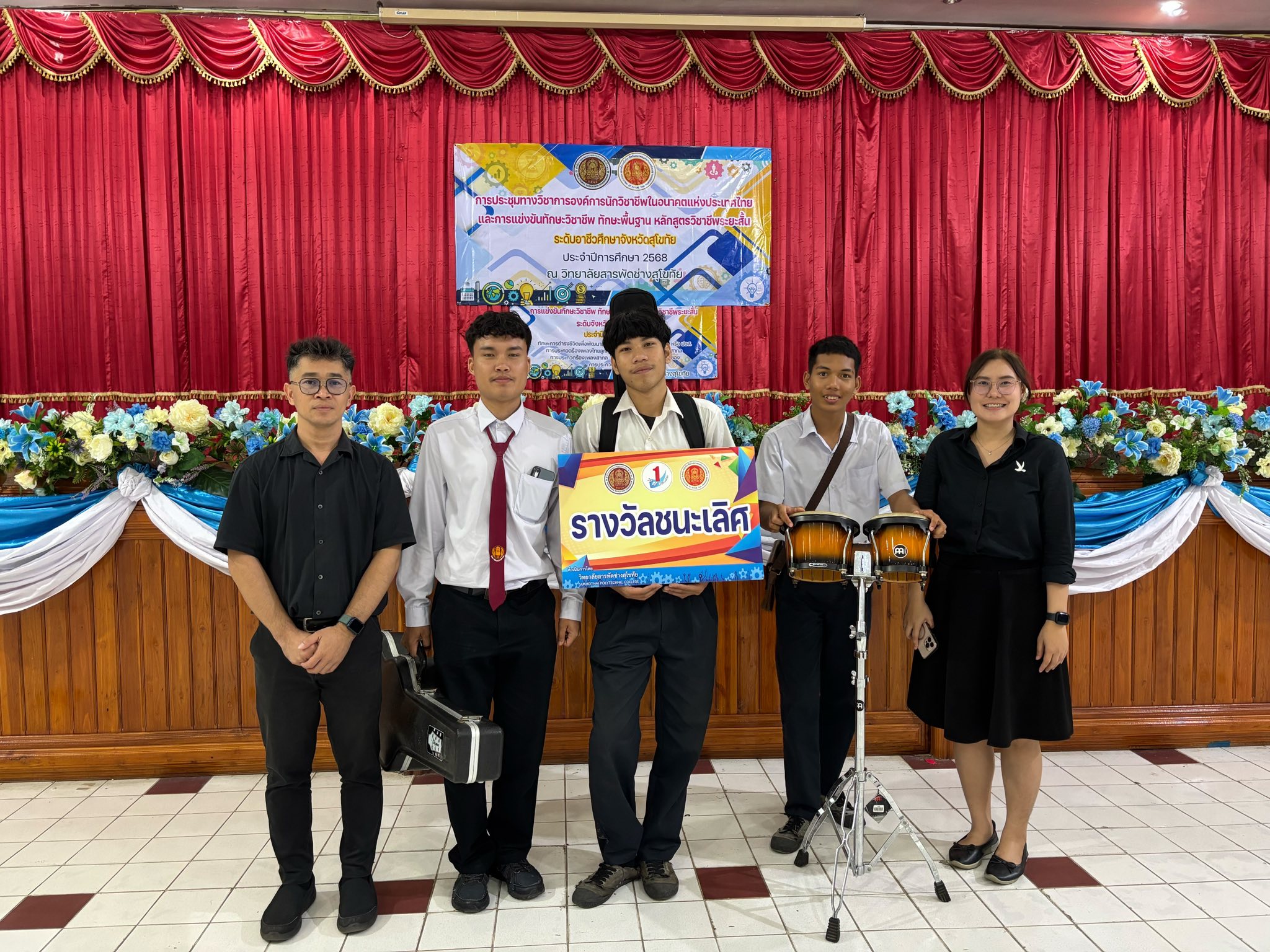 #รางวัลชนะเลิศขอแสดงความยินดีกับ นักเรียน นักศึกษา ได้รับรางวัลชนะเลิศ ประกวดวงดนตรีโฟล์คซอง ในการแข่งขันทักษะวิชาชีพ ทักษะพื้นฐาน และหลักสูตรวิชาชีพระยะสั้น ระดับอาชีวศึกษาจังหวัดสุโขทัย ครั้งที่ 37 ณ วิทยาลัยสารพัดช่างสุโขทัย ได้เป็นตัวแทนไปแข่งขันต่อในระดับภาคต่อไป ครูผู้ควบคุม ครูนิรัญ ปิ่นเกตุ ครูรัตนาภรณ์ เพ่งพินิจ