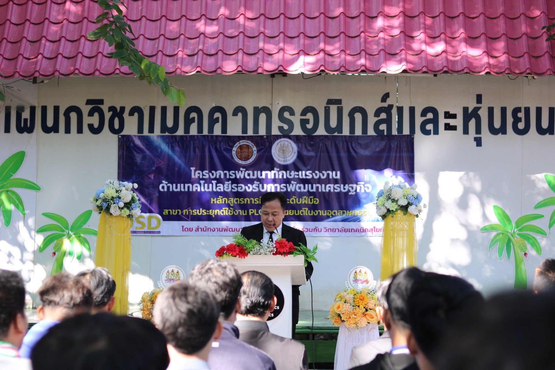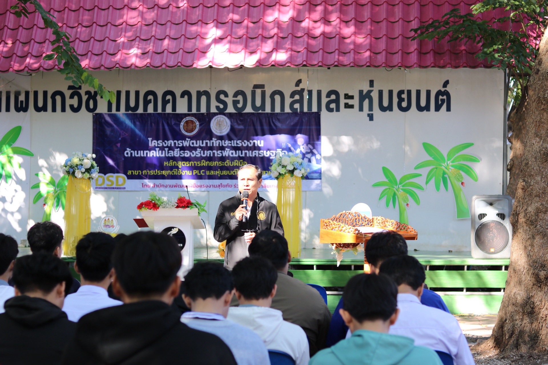 ผู้อำนวยการสมใจ รอดคง เป็นประธานเปิดการฝึกอบรม #โครงการพัฒนาทักษะแรงงานด้านเทคโนโลยีรองรับการพัฒนาเศรษฐกิจ สาขา การประยุกต์ใช้งาน PLC และหุ่นยนต์ในงาน อุตสาหกรรม โดยกรมพัฒนาฝีมือแรงงาน ได้จัดฝึกอบรมให้กับกลุ่มเป้าหมาย แรงงานที่จะเข้าสู่กระบวนการจ้างงาน แรงงานในสถานประกอบกิจการ แรงงานใหม่ โดยมีจุดประสงค์เพื่อพัฒนาทักษะและสมรรถนะของคนช่วงวัยทำงาน ให้สามารถปรับตัวและเพิ่มทักษะที่จำเป็นสอดคล้องกับความต้องการของตลาดแรงงานๆ โดยได้กำหนดการ ฝึกอบรมหลักสูตรการฝึกยกระดับฝีมือ สาขา การประยุกต์ใช้งาน PLC และหุ่นยนต์ในงานอุตสาหกรรม